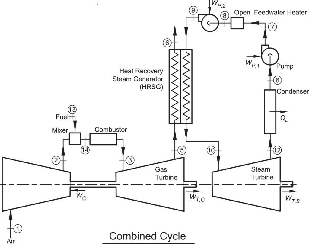 - Récupération de chaleur : Les gaz d’échappement sont utilisés pour produire de la vapeur, laquelle entraîne une seconde turbine (turbine à vapeur).